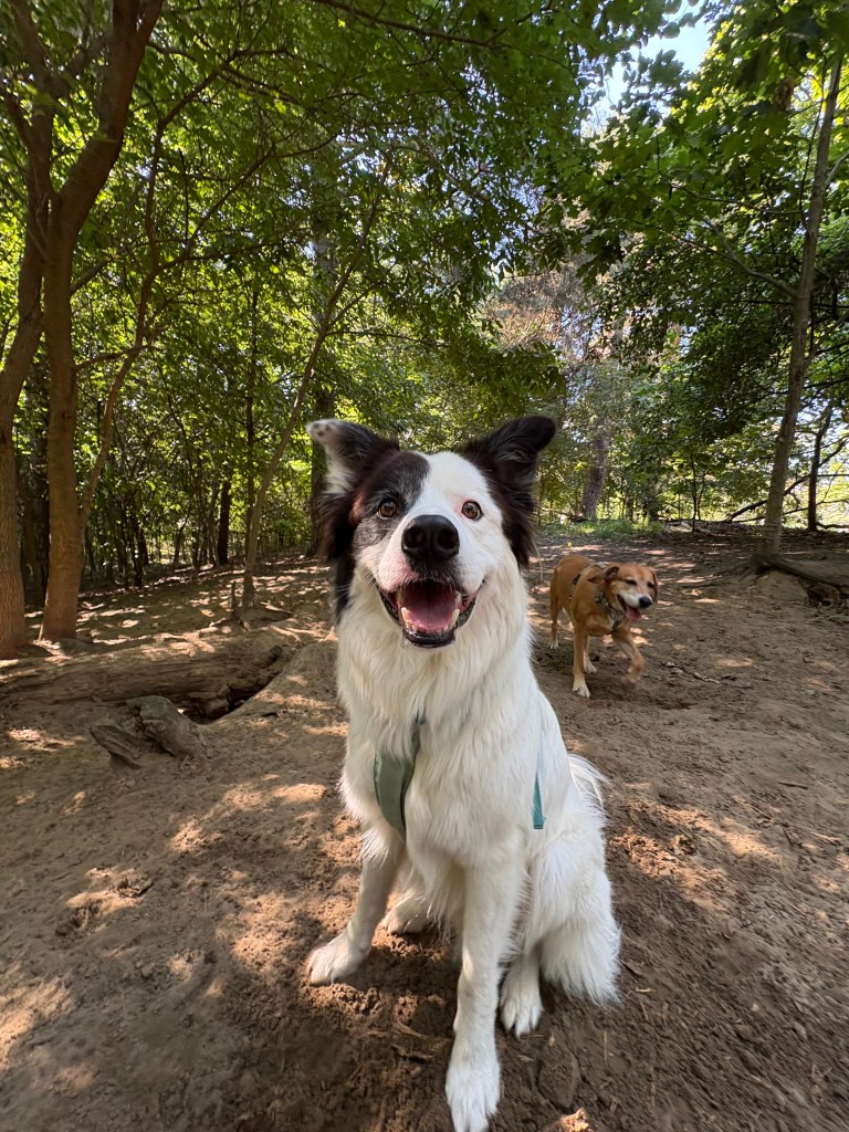 Liberty is an absolute gem. My girl, Mimi is a rescue and can be quite reactive (barky) on leash. Liberty was willing to take her on, and has been working on socializing, as well as some training while out on adventures. Liberty has the most calm and patient presence, and although they’ve not been working together for that long, I already see such a difference in Mimi.